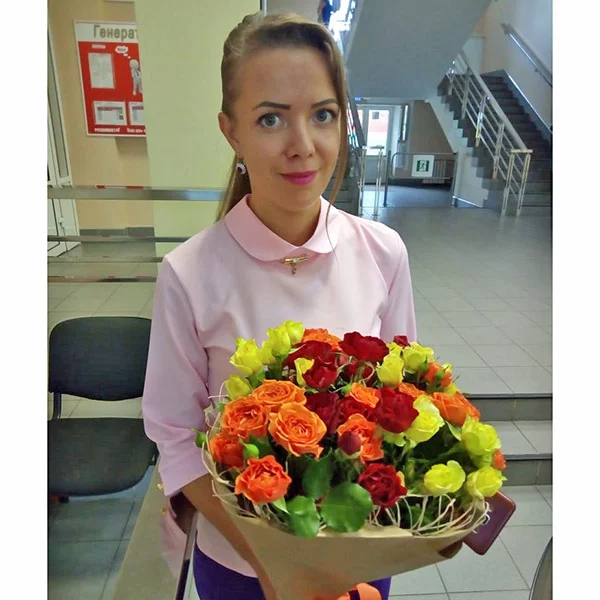 Уже который год пользуюсь Вашими услугами в разных городах и еще ни разу не не подвели меня. За что отдельное спасибо. Кустовая роза это любимые цветы моей дочери, поэтому долго не раздумывая мой выбор пал именно на такой букет. Роза свежайшая, на следующий день бутоны стали раскрываться, минимум упаковки (как я и просила). В общем дочь счастлива и мне радостно, что смогла с Вашей помощью передать ей свои поздравления, находясь далеко от нее. Благодарю.
